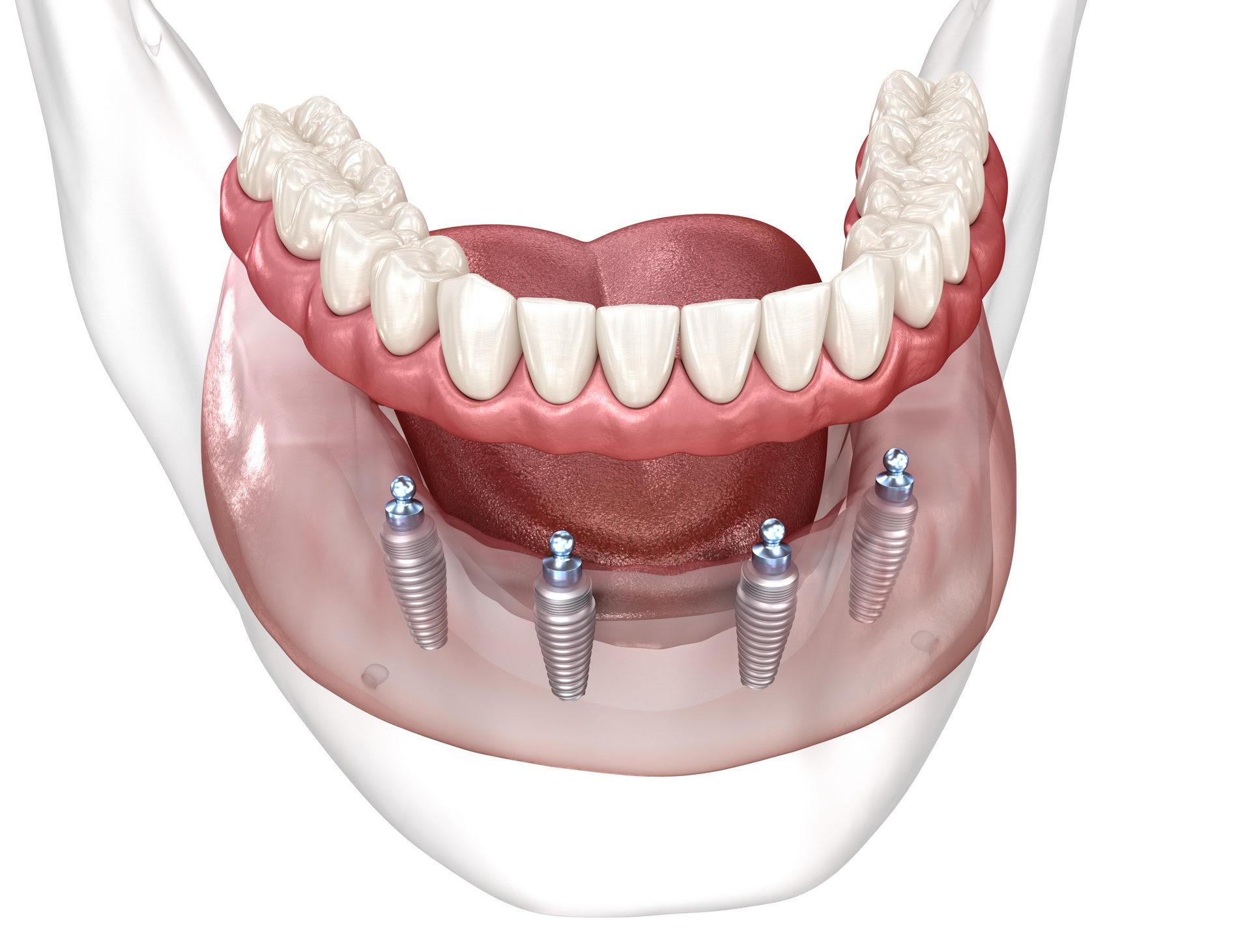 Teljes fogsort 4 implantátummal rögzítenek, gyors, stabil megoldás csonthiányos pácienseknek.