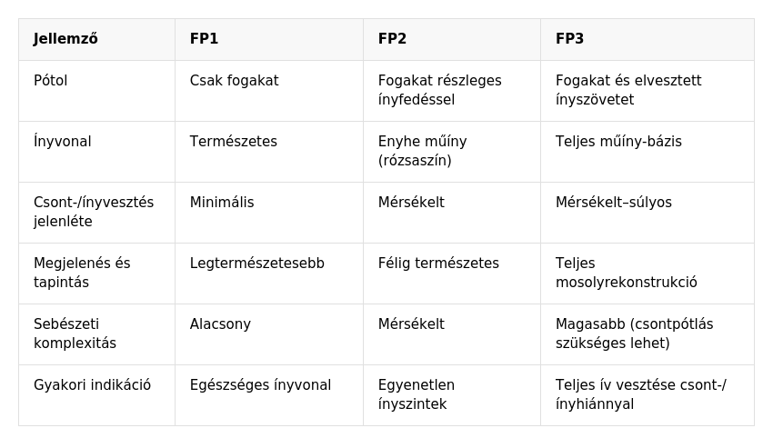 Ist eine zahnärztliche Versorgung nach FP1-Standard nicht möglich und kann horizontaler oder vertikaler Knochenverlust nicht ausgeglichen werden, kommen alternative Methoden zum Einsatz. Bei mäßigem Knochenverlust und massivem Weichgewebsverlust – oder wenn der Patient aus Zeitgründen, finanziellen Erwägungen oder aufgrund von Angst keine Knochen- und Weichgewebsaugmentation wünscht – stellt die Versorgung nach FP2-Standard die ideale Lösung dar. Hierbei wird rosafarbene Keramik verwendet, die das fehlende Weichgewebe ästhetisch ersetzt und gleichzeitig ein stabiles und dauerhaftes Ergebnis gewährleistet.