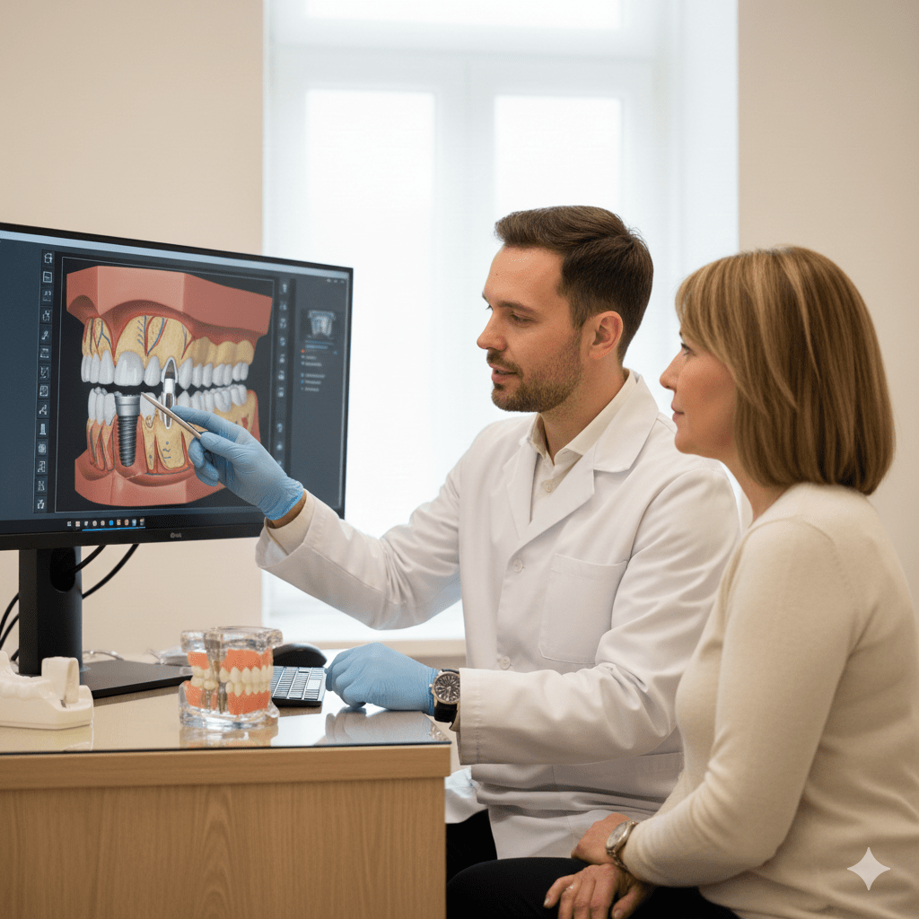Die periimplantäre Chirurgie befasst sich mit dem Erhalt und der Wiederherstellung von Knochen und Weichgewebe um Implantate herum. In unserer Praxis setzen wir auf prothetisch geführte Planung und Implantation, um eine optimale Positionierung des Implantats – sowohl funktionell als auch ästhetisch – zu gewährleisten.